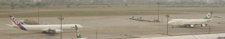 停機坪裡的飛機更別說了.. 當時有一架A340後推後因為大風沙